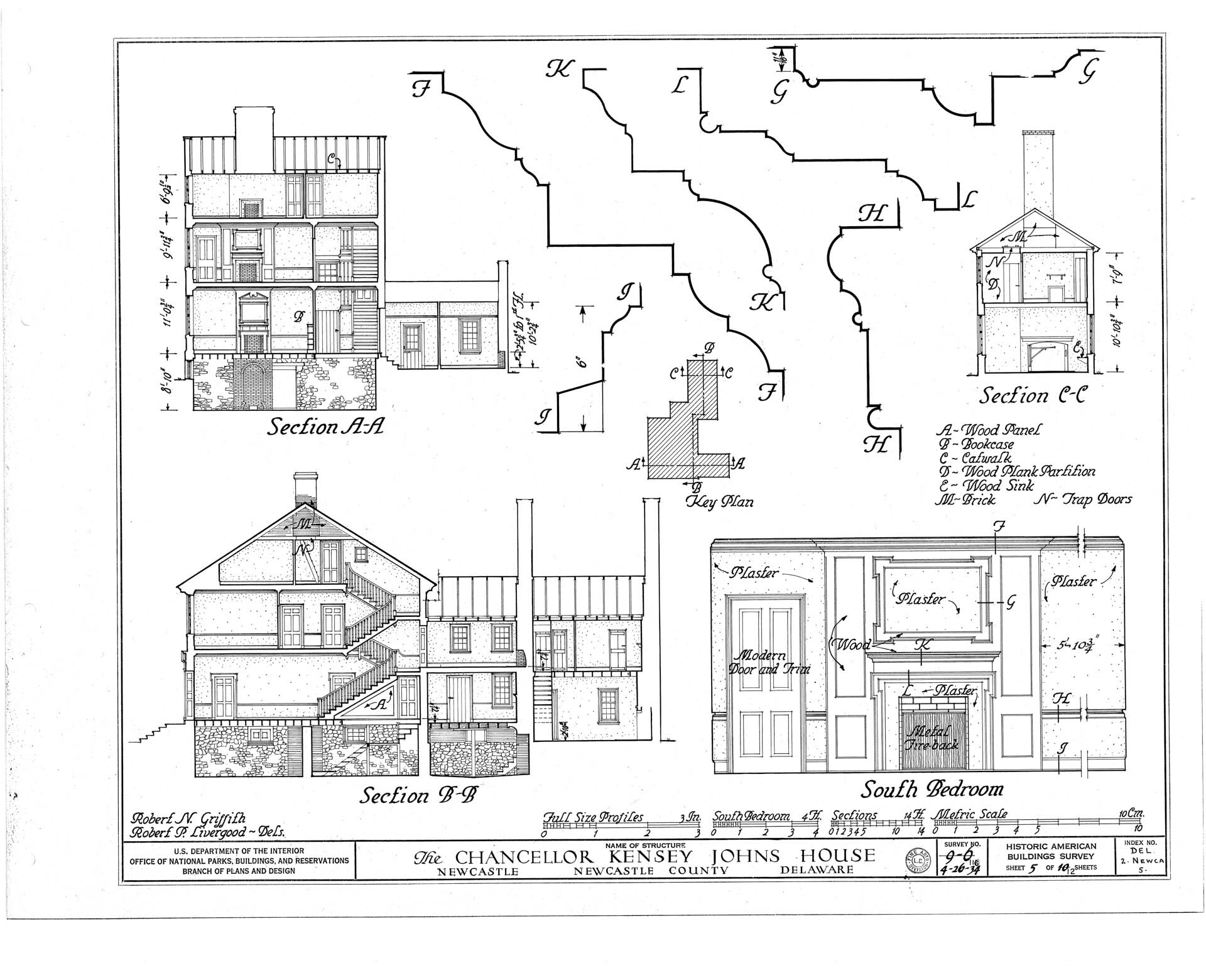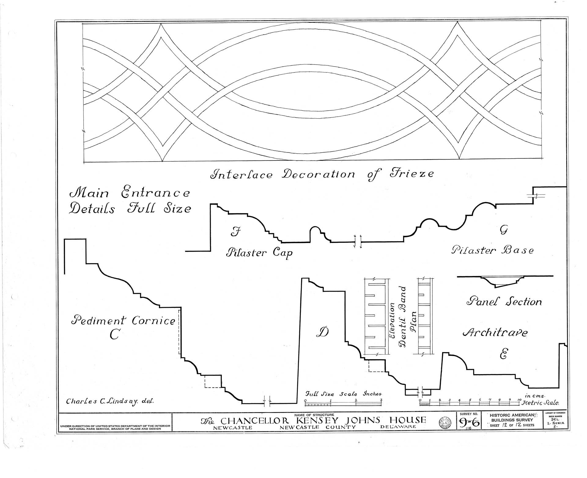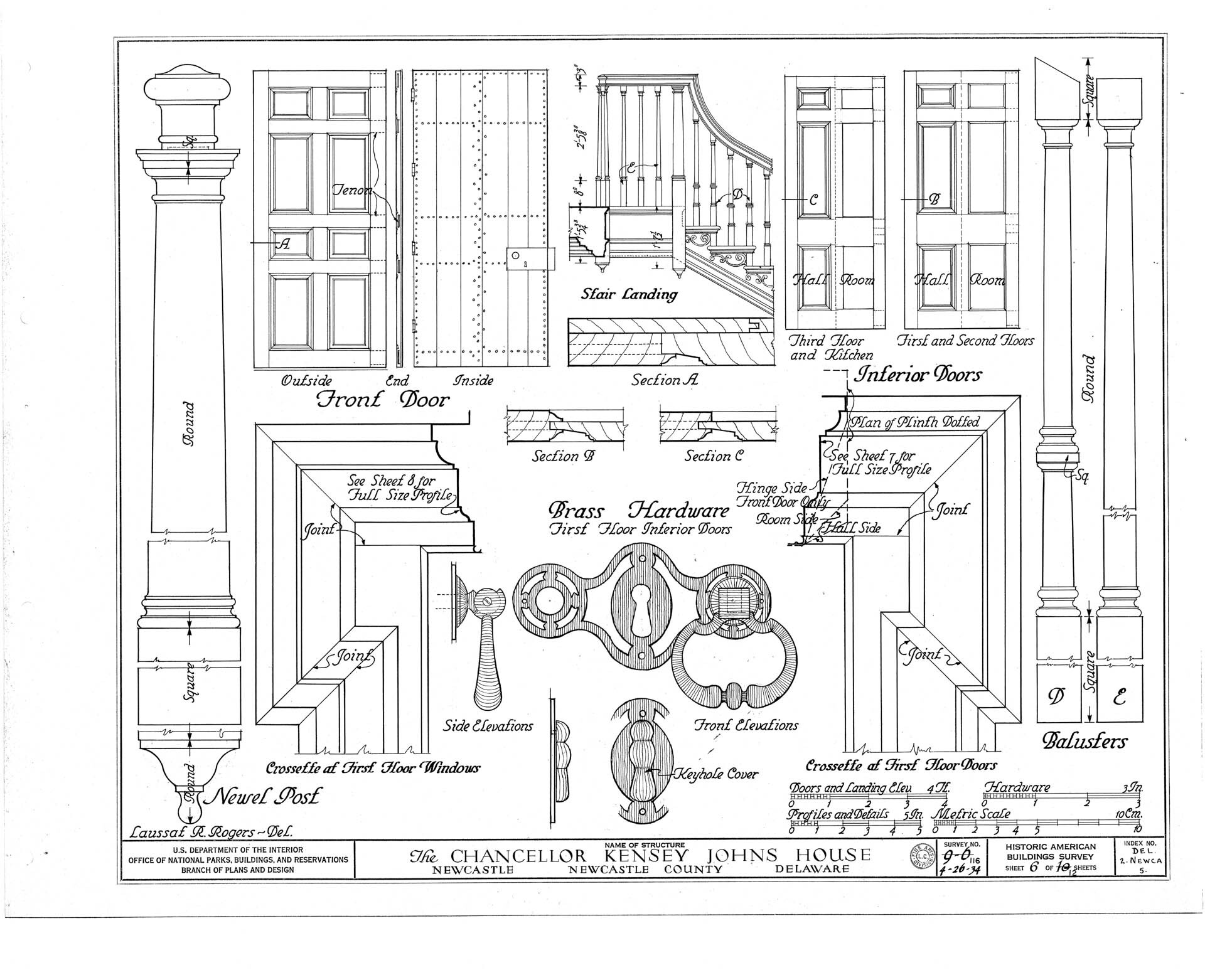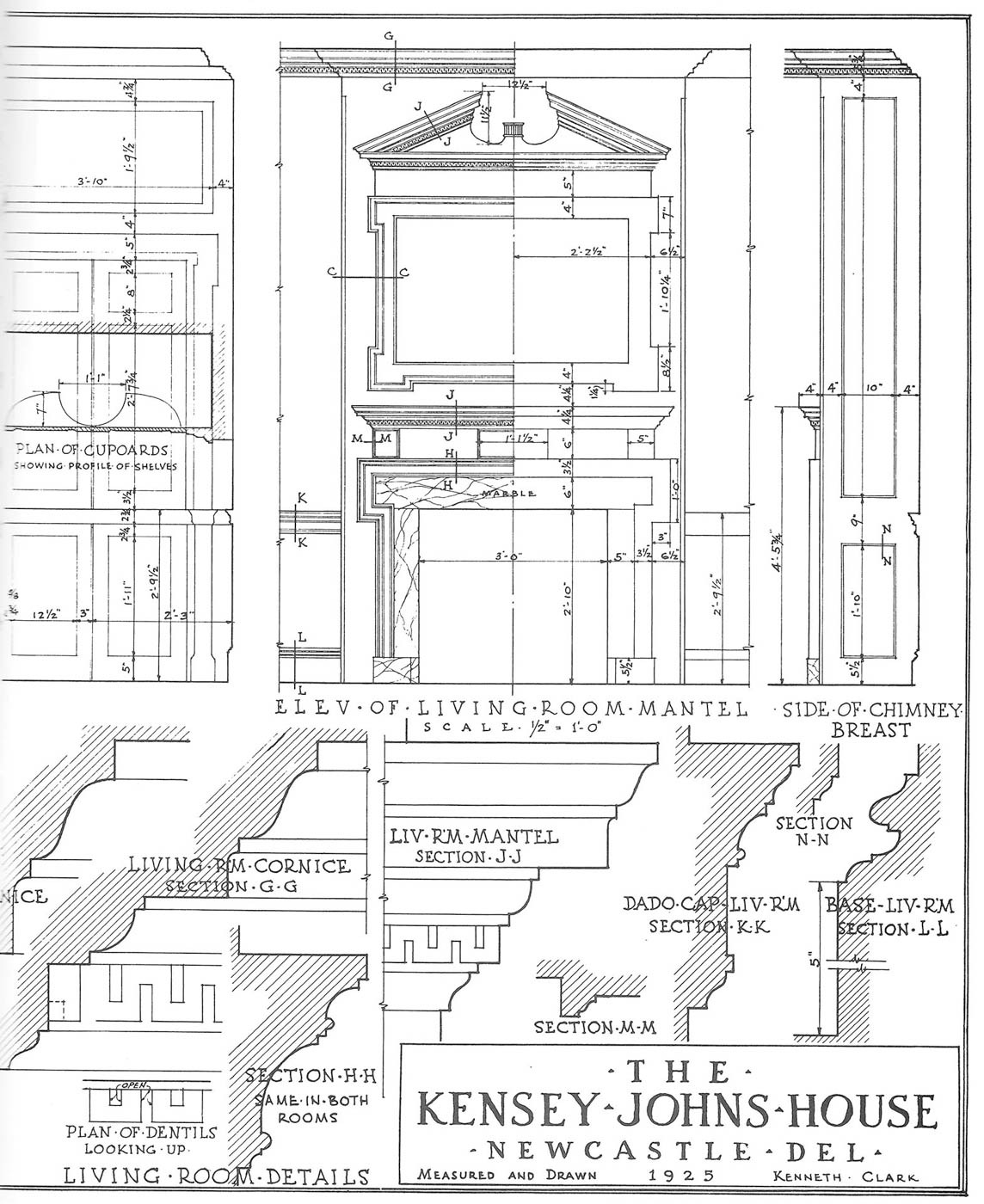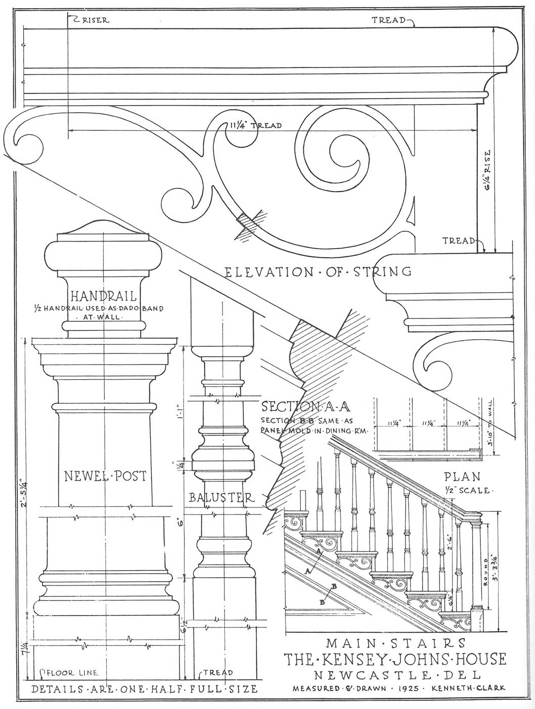 The house reveals a progression of spaces enriched by finely executed millwork, as documented through surviving photographs and measured drawings. Principal rooms are framed by crisply detailed door and window surrounds, their profiles creating depth through light and shadow rather than ornament alone. Mantels and interior cornices employ classical motifs with discretion, while the stair hall introduces a quiet sense of movement through its balanced balustrade and finely shaped newel. Throughout the interior, craftsmanship and design intent remain closely aligned, producing rooms that feel deliberate yet unforced.