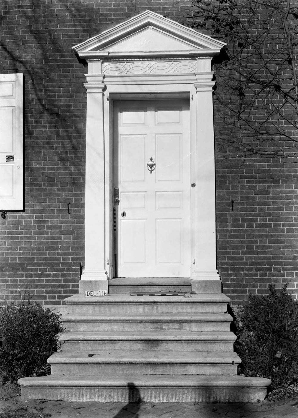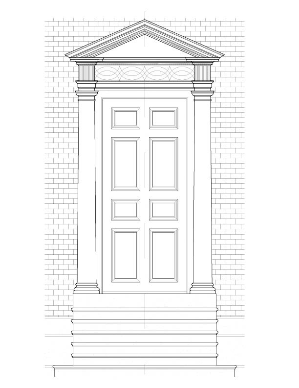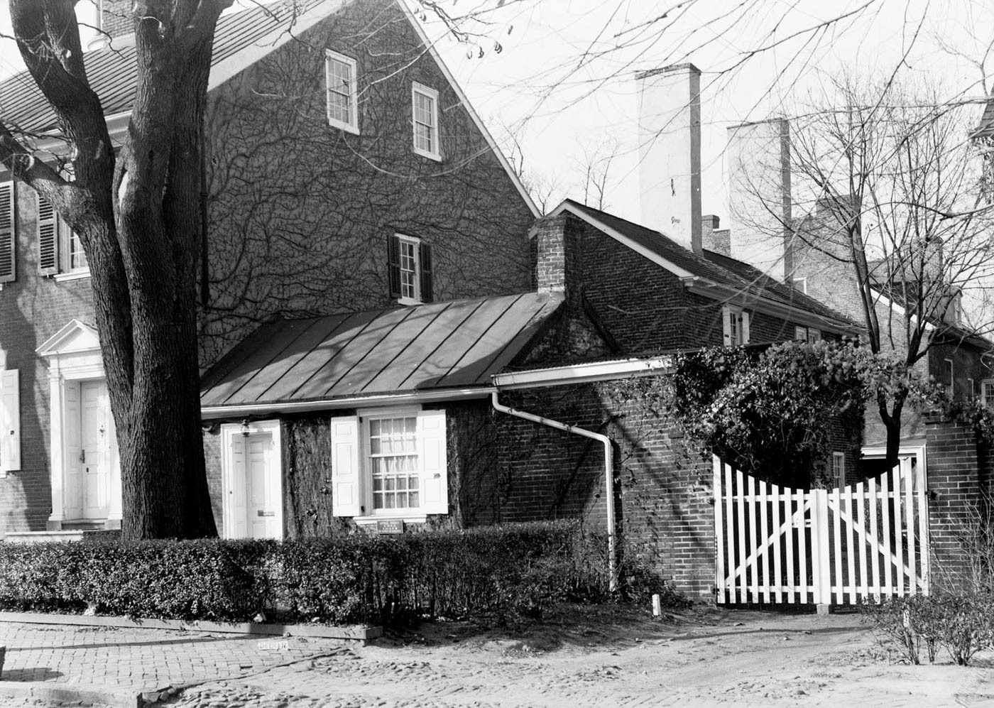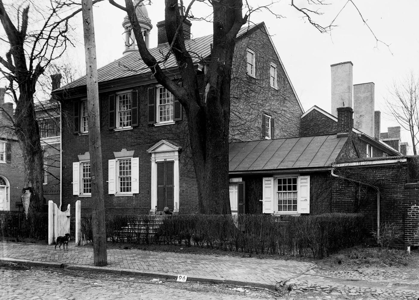 Organized as a side-passage, double-pile plan, the brick townhouse exemplifies the Federal period’s grandeur. The principal entrance is distinguished by Doric pilasters supporting a modest pediment, a composition derived from mid-eighteenth-century British pattern books and indicative of transatlantic design exchange. Within, the house retains richly paneled rooms with period woodwork and hardware, elements of which were later deemed significant enough to be donated to Mount Vernon in the early twentieth century. A secondary wing on the right side historically accommodated Johns’s law office, reinforcing the building’s dual domestic and professional function, while a rear addition dating to 1795 reconfigured service spaces, replacing the earlier cellar kitchen with more convenient dining accommodations.