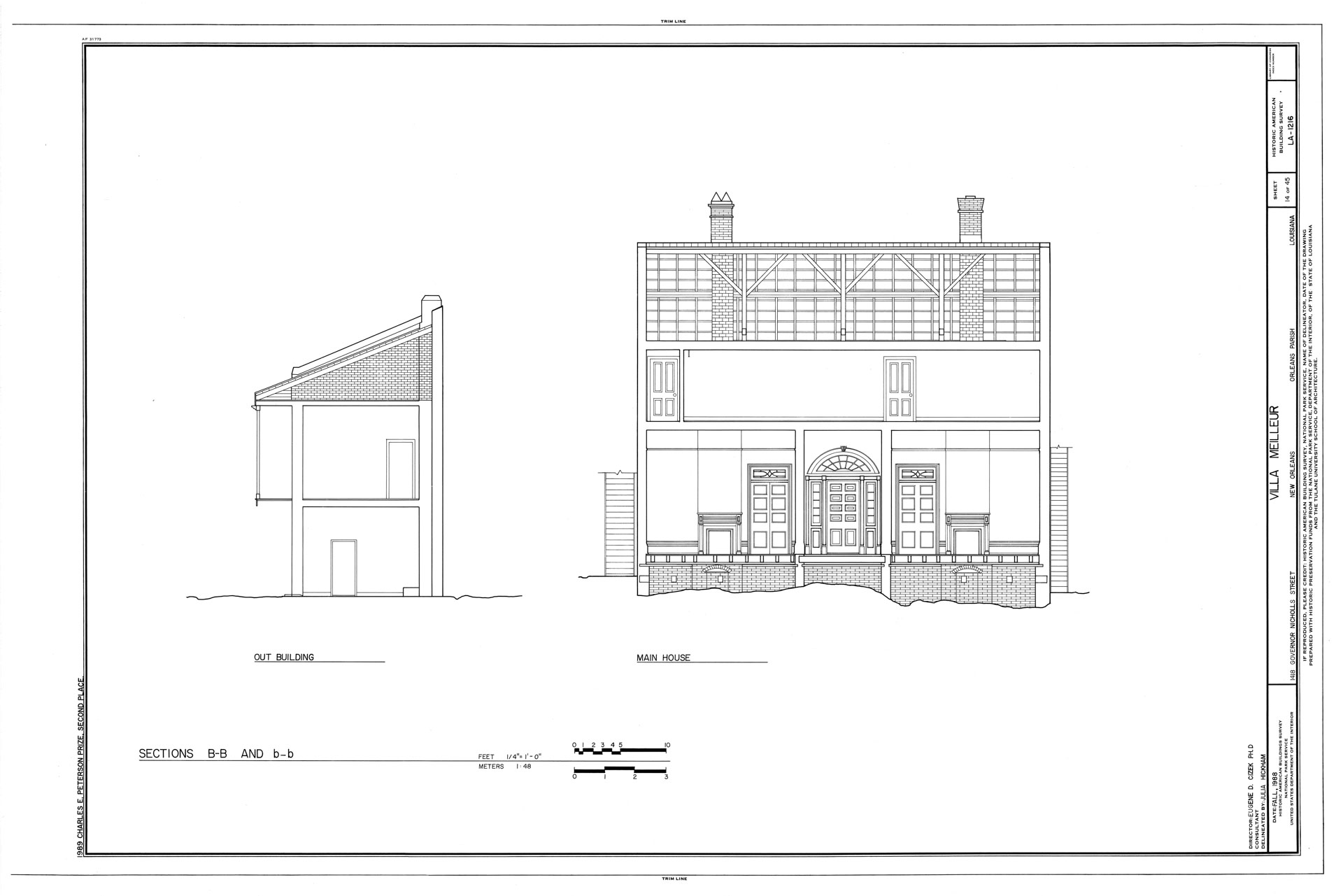 REAR BEDROOM, PARLOR AND LIBRARY FIREPLACE ELEVATION